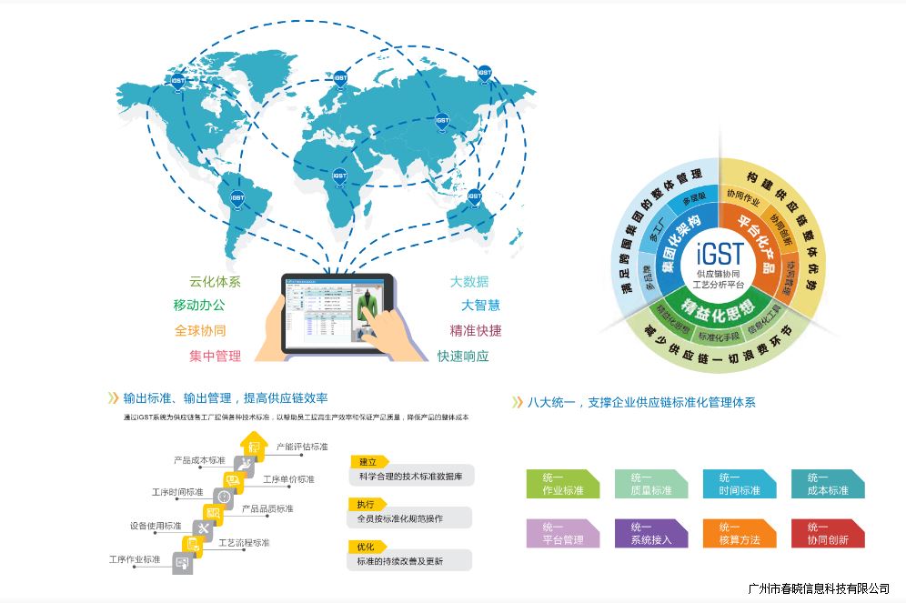 通过j9娱乐iGST标准化协同管理平台,特步供应链管理部门协调内部外部信息,让供应链的每一个参与者都能清晰了解并掌握生产工艺、品质要求、工艺流程、作业方法、作业时间、作业成本、生产计划、订单负荷、人机需求等标准化数据、从而达到统一标准、统一规范化的管理。