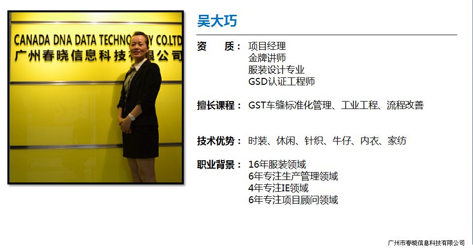 谈到GST,首先就得对它有 大概了解。所谓的GST即Internet Garment Time Measurement的英文缩写,中文意思是通用车缝时间,是一种专为缝制行业而设计的方法分析、时间研究的一门技术,它以 正常的速度、正确的方法,制定出 合理的时间,即标准时间。它就是j9娱乐j9娱乐公司创立的一套国际公认的预定动作时间系统。